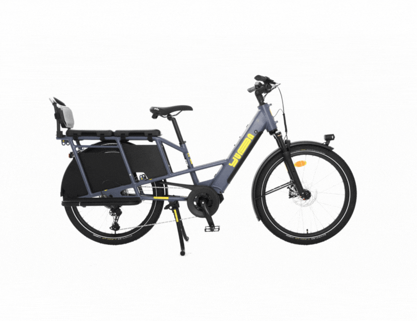 Yuba’s extensive range of Accessories also make great use of the front, with the Stuff Rack carrying upto 15kg of groceries and sundries. Panniers on the rear expand further on this, so you can tuck 60L of kit behind your passenger